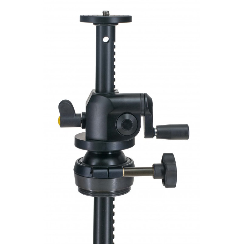 Der Moduleinsatz 4k besteht aus einer fest eingebauten Nivellierkugel (Durchmesser 55 mm) mit einem Schwenkbereich von 30° und einer Kurbelsäule (Ø 25 mm) 50 cm lang ( Verstellweg: 39 cm ). Durch die eingebaute Dosenlibelle ist ein schnelles und genaues Ausrichten und mit der Mittelsäule eine bequeme Hohenverstellung des Stativs möglich. Der Auflageteller aus Aluminium hat einen Durchmesser von 68 mm und ist mit drei Sicherungsschrauben ausgestattet zur Sicherung der montierten Technik gegen unbeabsichtigtes Lösen.