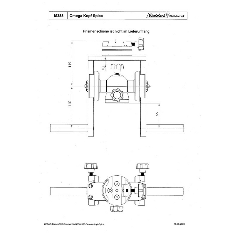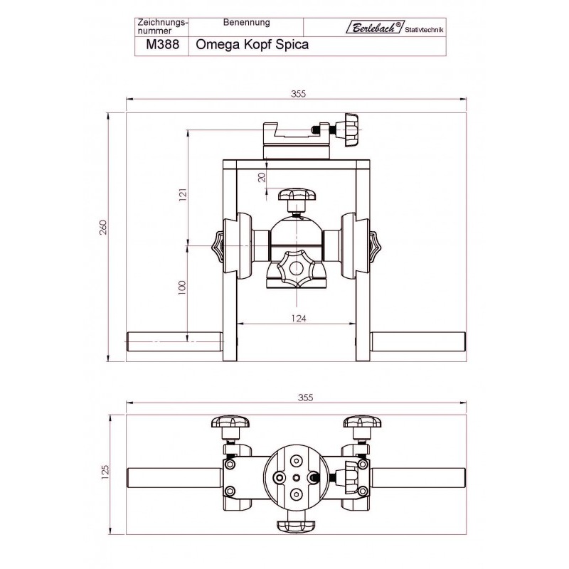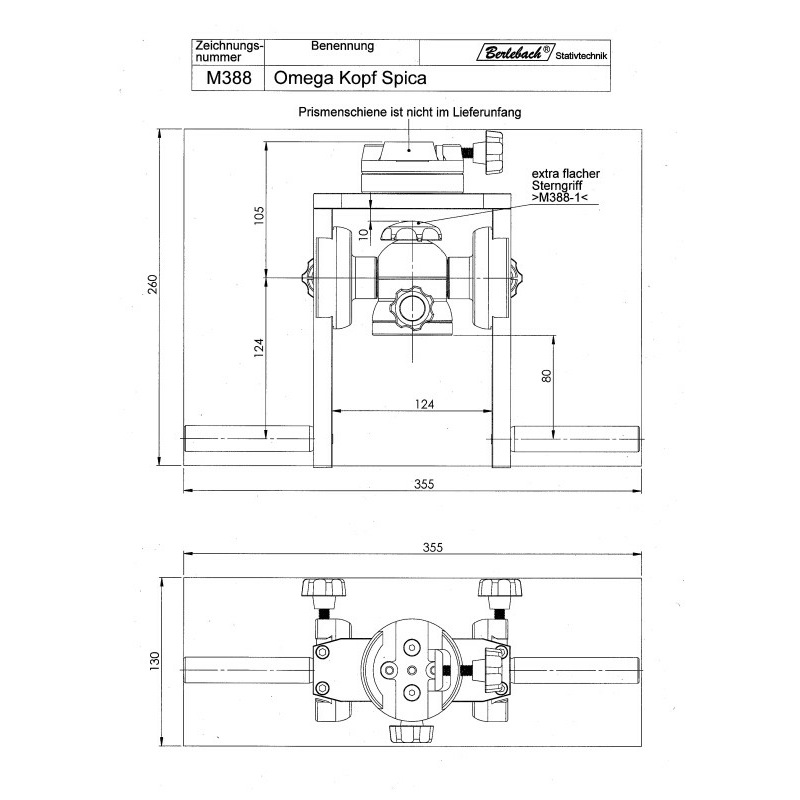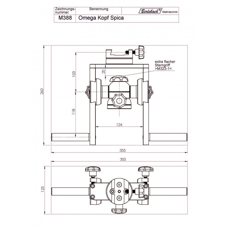 Durch die Verwendung eines extra kurzen Sterngriffes zur Vertikalklemmung optional) kann der Schwerpunkt um weitere 2 cm abgesenkt werden. Dadurch ist eine Reduzierung von Gegengewichten bei gleichem Schwerpunkt möglich.