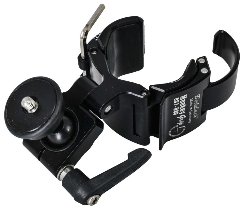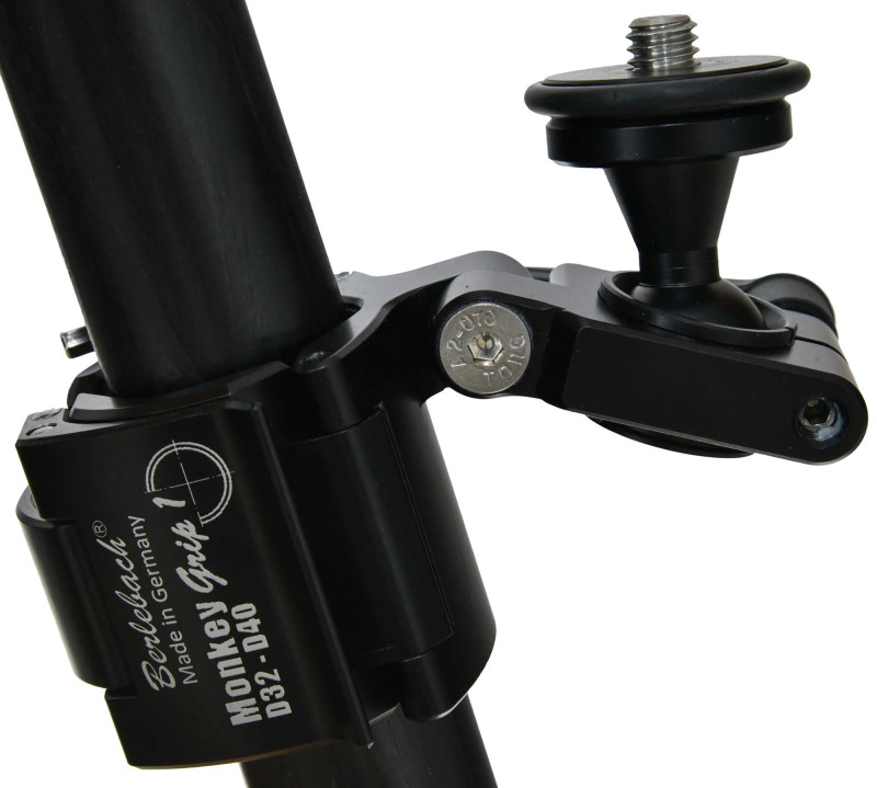 Der Monkey Grip 1 D32 – D40 ist ein Befestigungs-Adapter für Rundprofile im Durchmesserbereich 32 mm – 40 mm. Zu beachten ist dabei, dass er keine stufenlose Verstellung hat, sondern Raststufen. Die sind durch ein auswechselbares Rastsegment festgelegt. Die kleinste Abstufung entspricht einer Durchmesserdifferenz von 2 mm. Nutzen Sie die Rastabstufung 32 36 40 oder 32-34-36-38-40 mm Optionsmenü oder teilen Sie uns, die von Ihnen gewünschten Durchmesser mit.Grip 1 bedeutet, dass der Adapter mit einem kleinem Kugelstumpf ausgerüstet ist, welcher eine Bewegungsfreiheit bis ±35° ermöglicht. Wahlweise mit ¼"UNC oder 3/8"UNC Gewindestift, am Adapter zu wechseln.