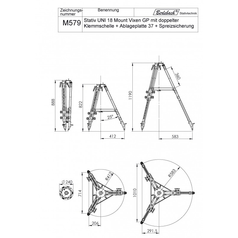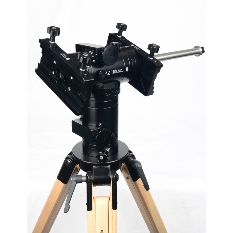 Our well-proven UNI tripods for astronomers are excellent working tools and great value for money. With the included attachable tray (37 cm) an angle of inclination of approximately 23° can be achieved. Furthermore you can use a steel chain (also included in the delivery).When using the tripod for the ZWO AM 5, we also recommend the base plate (# 5006184) or, better still, the base plate (# 5006180). Thanks to the collar with the recesses, this offers protection against twisting and more free space at the control knobs for azimuth adjustment, especially when using our Planet tripod.