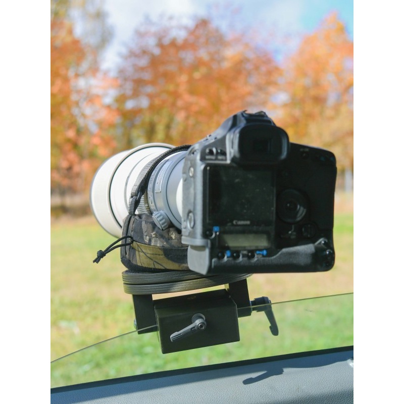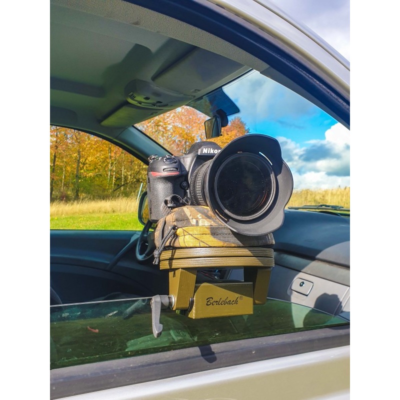If you are looking for an easy to use, compact tripod for taking pictures from your car, the Berlebach car window mount with bean bag is the ideal combination. A classic bean bag tripod is combined with a car window mount and supplemented by a panorama function.For mounting, the tripod, just like a normal car window mount, is simply put on the partially lowered side window and fixed there with the help of the clamping lever. The platform of the tripod can be swivelled vertically by -21°-0- 90° and the respective position can be adjusted via the lateral clamping lever.