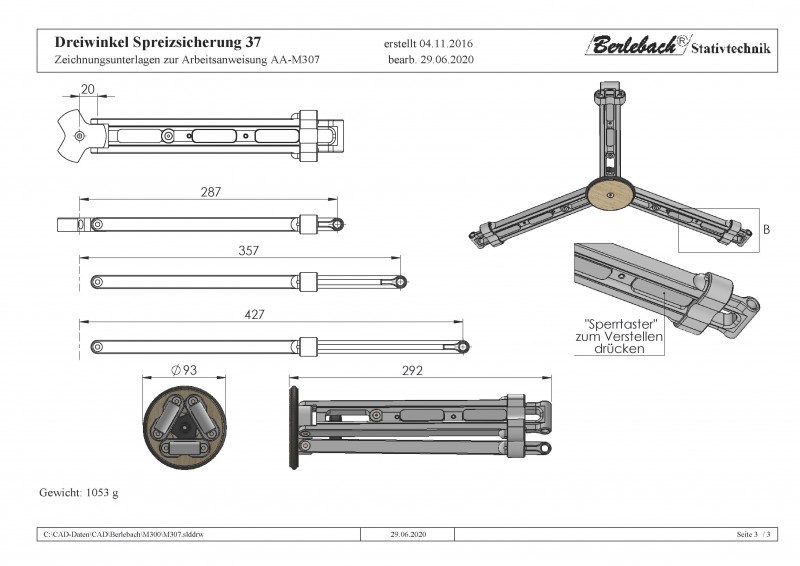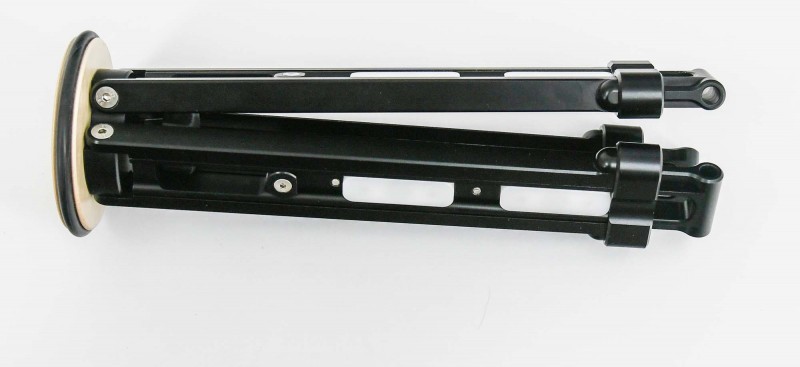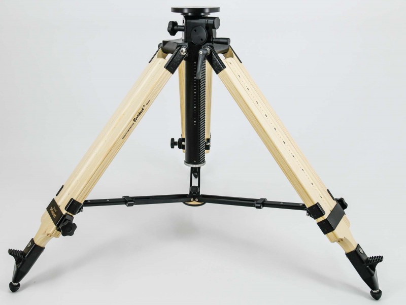 With this adjustable spreader lock, you can securely lock the leg spread of your tripod at three fixed angles (at approx. 24, 32° and 40°). This also prevents the tripod legs from swinging inwards. The special feature of a variable spreader lock is that you almost always have the same leg triangle from the minimum to the maximum set-up height of the tripod.This allows flexible use of the tripod with different superstructures. This spreader lock is recommended for the Planet tripod.