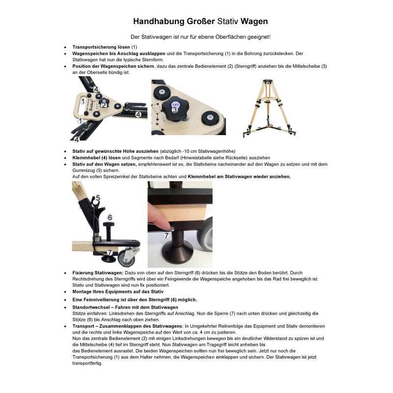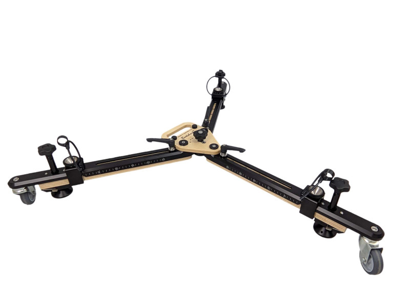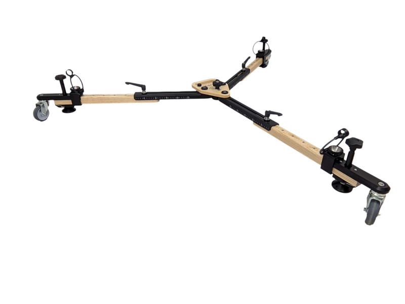 The large tripod dolly is designed for astronomy and allows easy transportation and stable positioning of the equipment. Fine levelling is easily possible via the adjusting screws. The quick adjustment of the supports guarantees a quick fastening.It can be loaded with up to 100 kg, roller diameter 75 mm