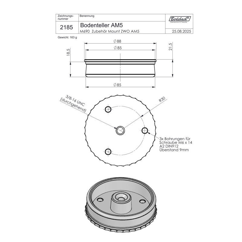 Bottom plate 2185 from ZWO AM5 and AM3 to 3/8"