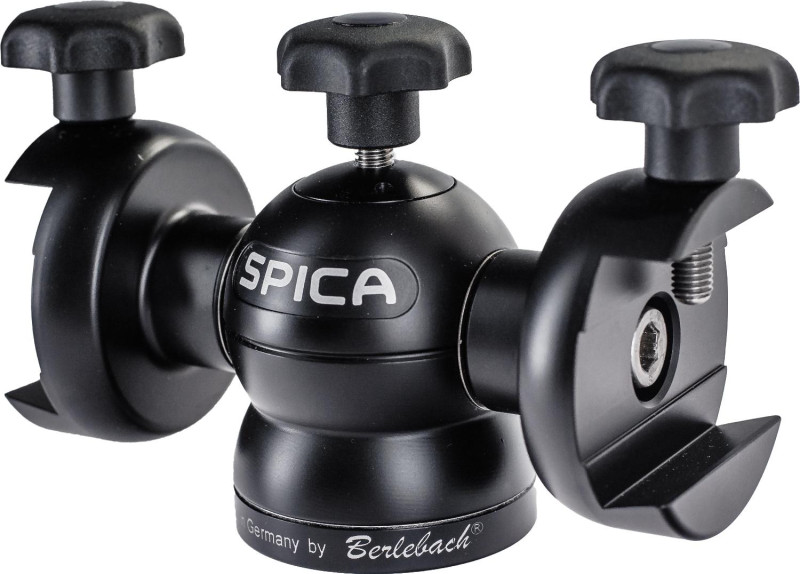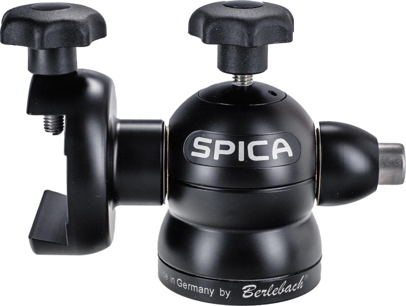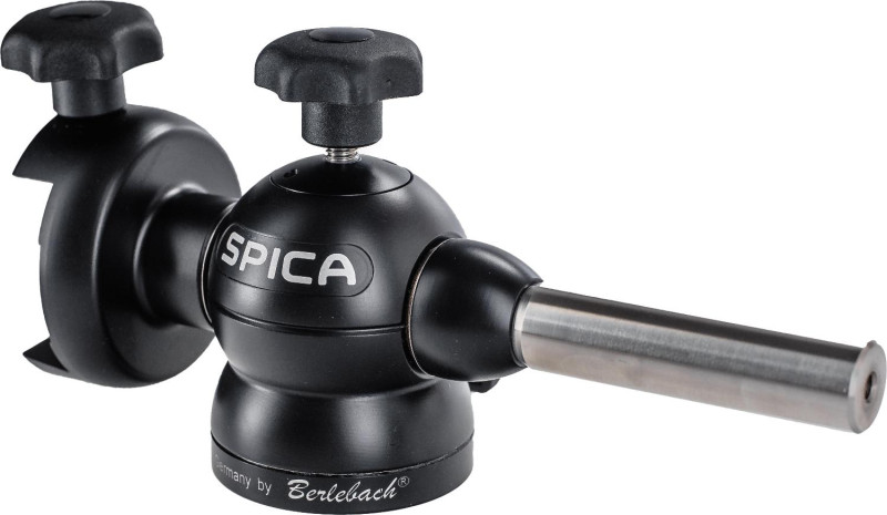 SPICA es una montura acimutal pequeña y liviana para viaje que sujeta largavistas, telescopios y cámaras. Es posible regular la fricción en ambos ejes usando perillas. El eje vertical es de acero inoxidable, con cojinetes de bronce. Del segundo lado se puede fijar una barra de contrapeso, una segunda sujeción cola de milano o un acoplamiento rápido para cámaras o telescopios. ¡Solicitamos indicarlo al hacer el pedido! La conexión roscada es de 3/8". El diámetro en la conexión al trípode es de 60 mm. Para otros tamaños de rosca se emplea el- Weight: 0,99 kg = 2.18 lbs.