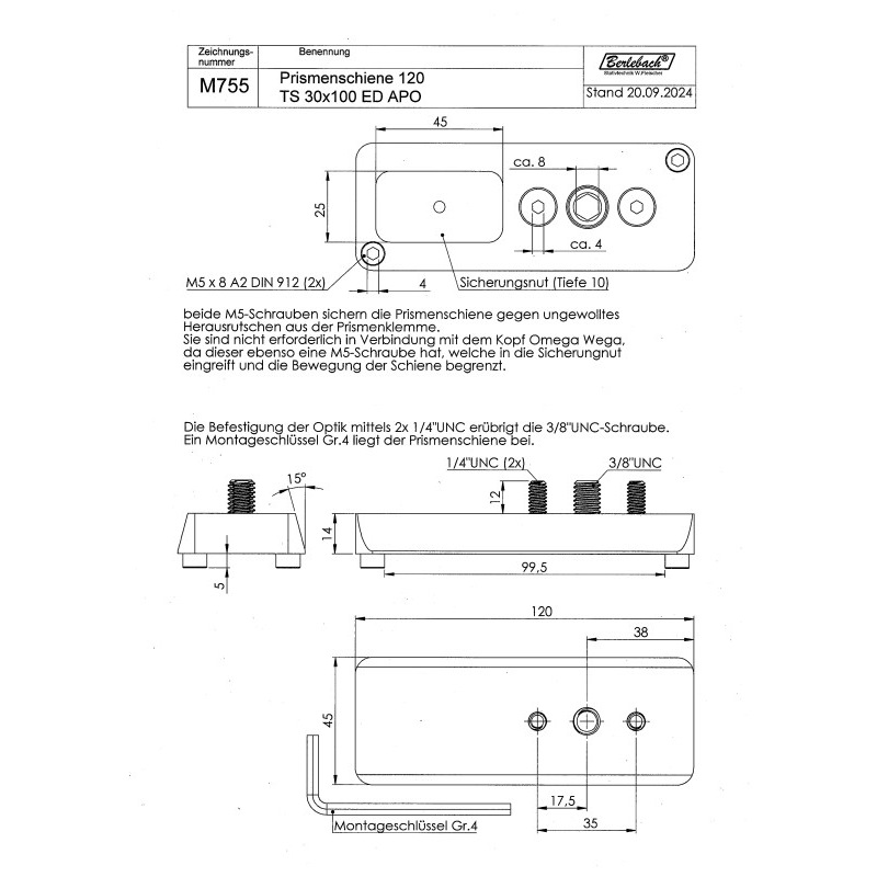 Dovetail plate 120 mm for Fork Mount Wega Rails à prisme Click here to view full size Product Description Weight: 0,14 kg = 0.31 lbs. Item number: 500606-M755 Availability: in stock Customize Wega Tige à contrepoids sans: 0.00 €1 x 80 mm: 28.00 €1 x 100 mm: 31.00 €2 x 80 mm: 56.00 €2 x 100 mm: 62.00 € Wega Tige à contrepoids sans: 0.00 €2 kg: 139.00 €3 kg: 149.00 €2 x 2kg: 278.00 €2 x 3 kg: 298.00 € Price: 47,00 € Qty: Add to Cart What people say about this product We'd love to hear your opinion about this product. Your name: Your email address:(will not be published) Your opinion: Privacy Policy: Please confirm by clicking on the checkbox that you have read our Privacy Policy and accept it. Captcha: Our comment function can only be used in connection with Google reCAPTCHA. By loading reCAPTCHA, you accept Google's privacy policy. Learn more Load reCAPTCHA Submit