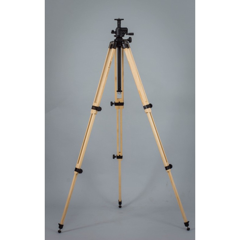 The tripod Report 843/K25 is equipped with the module insert 4K, i.e. with a crank centre column which has a length of 50 cm and a diameter of 25 mm, made of precision-drawn light-metal tubing, and a levelling ball. The centre column is additionally equipped with a rotating panorama plate. By means of the centre column, the levelling ball can be tilted by 30° in all directions. The support plate made of aluminium has a diameter of 68 mm and is equipped with a fixed fastening screw (size to be selected) as well as three locking screws which secure the mounted system against unintentional loosening. The spirit level ensures a quick and precise adjustment.Double tripod leg extension.